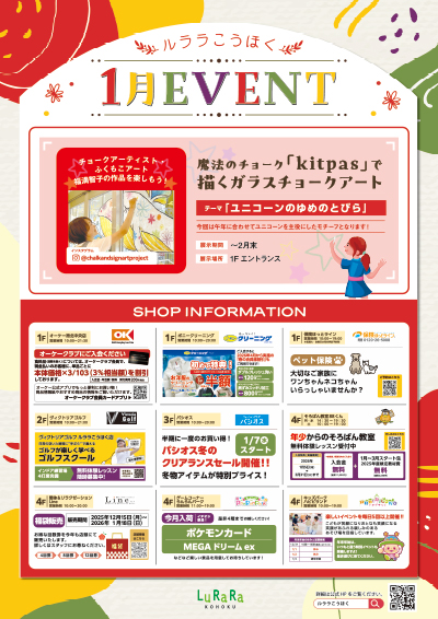 ルララこうほくの1月館内イベント&各店舗キャンペーン情報をご案内いたします。