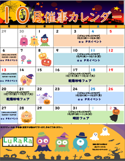 ルララこうほくの10月度催事スケジュールをご案内いたします。