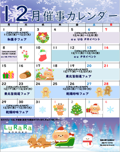 ルララこうほくの12月度催事スケジュールをご案内いたします。