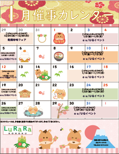 ルララこうほくの1月度催事スケジュールをご案内いたします。