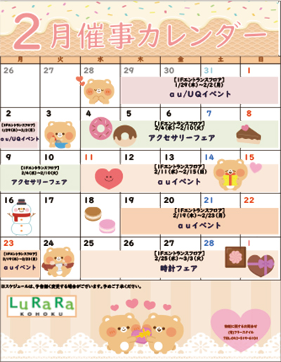 ルララこうほくの2月度催事スケジュールをご案内いたします。
